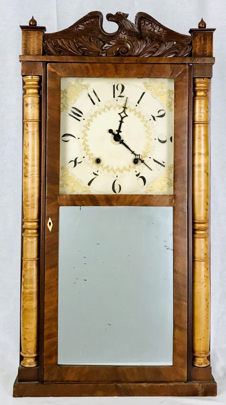 The Madison County Historical Society is excited to announce 4 new additions to the collection. Russ Oechsle was overly generous and donated 4 beautiful wooden shelf clocks to add as permanent exhibits to the Historical Society on November 19th, 2025. The 4 clocks donated were each uniquely crafted by 4 separate clock makers of Madison County in the 19th century: William Dexter of Stockbridge, NY, Horace Dexter Stockbridge, NY, L. & J. Frisbie of Chittenango, NY, and Carter & Weller of Stockbridge, NY. Each clock sharing design characteristics influenced by the American Empire style that had been growing in popularity through the 1830s. They are all meticulously crafted with elegant detail and color.