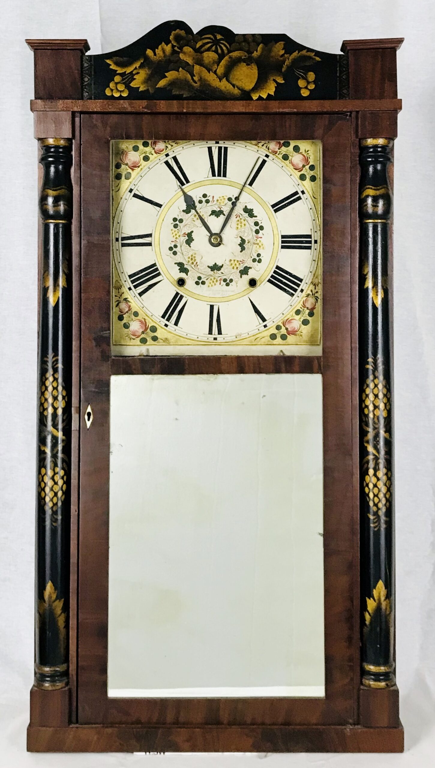 The Madison County Historical Society is excited to announce 4 new additions to the collection. Russ Oechsle was overly generous and donated 4 beautiful wooden shelf clocks to add as permanent exhibits to the Historical Society on November 19th, 2025. The 4 clocks donated were each uniquely crafted by 4 separate clock makers of Madison County in the 19th century: William Dexter of Stockbridge, NY, Horace Dexter Stockbridge, NY, L. & J. Frisbie of Chittenango, NY, and Carter & Weller of Stockbridge, NY. Each clock sharing design characteristics influenced by the American Empire style that had been growing in popularity through the 1830s. They are all meticulously crafted with elegant detail and color.